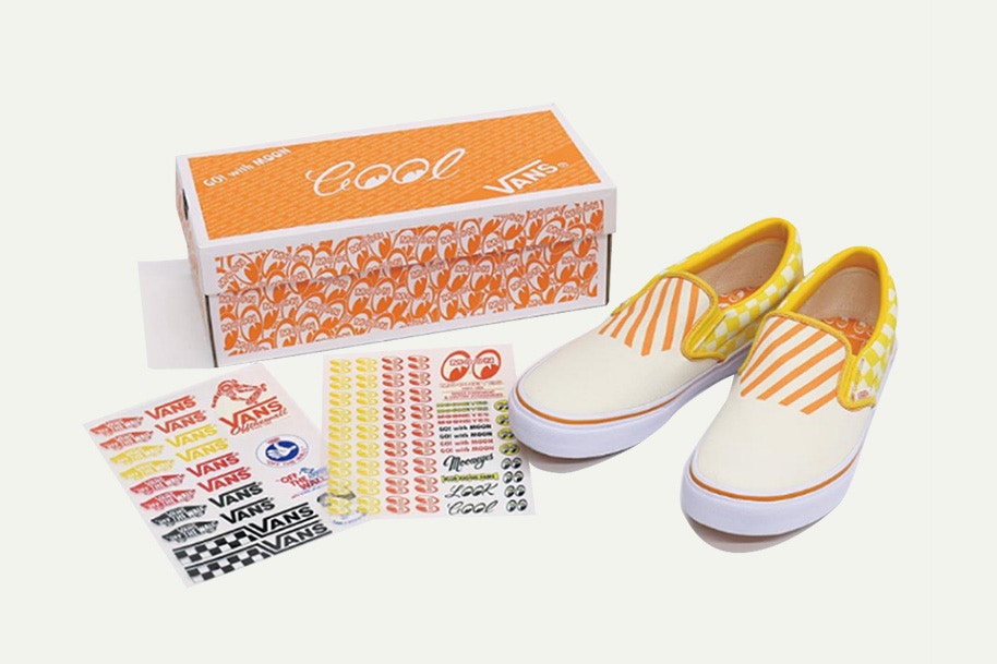 为庆祝日本最大室内改装汽车&摩托车展YOKOHAMA HOT ROD CUSTOM SHOW在12月3日举办第26届活动,Vans携手举办方M00NEYES推出了合作款系列,将改装车的灵感带到了Half Cab和Slip-On上:随盒附有贴纸在内,可供大家DIY改造鞋面。