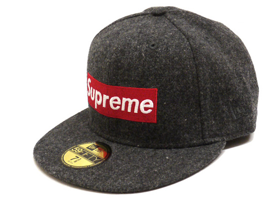 Supreme推出了与New Era合作的棒球帽,帽身采用老牌Woolrich羊毛纺面料,经典的红白Box Logo置于帽前中部。