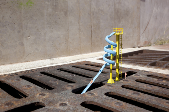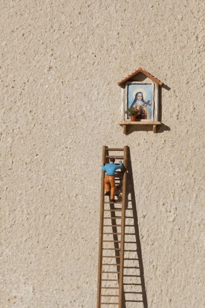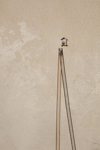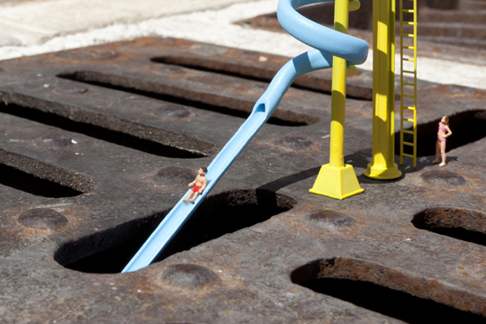 Slinkachu是一位来自英国伦敦的迷你街头背景装置艺术家/摄影师,他喜欢把手制的微型玩偶结合街头实景,或者