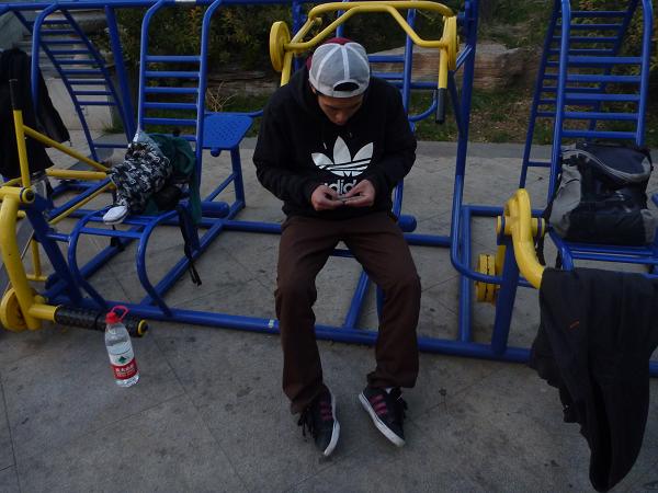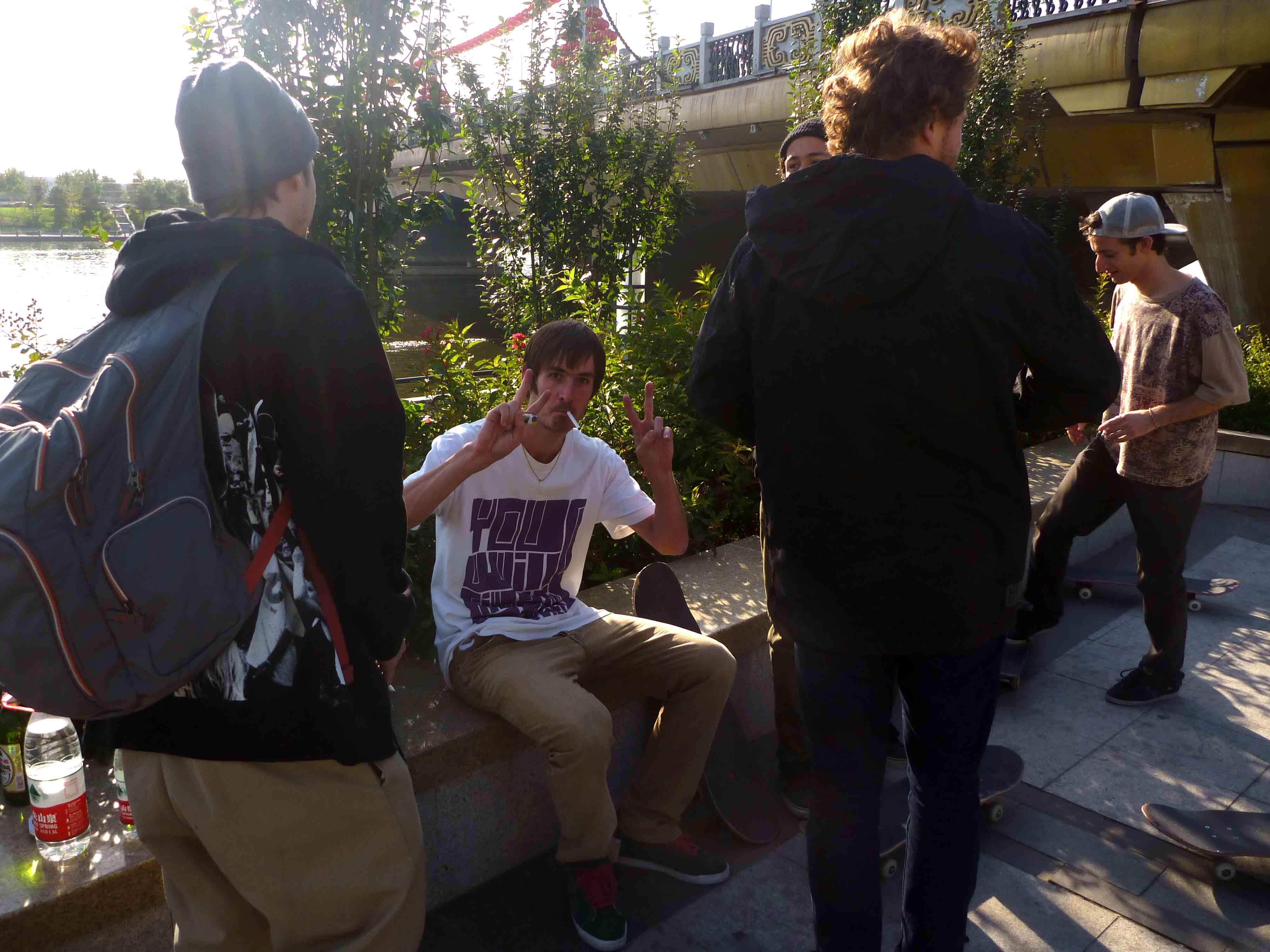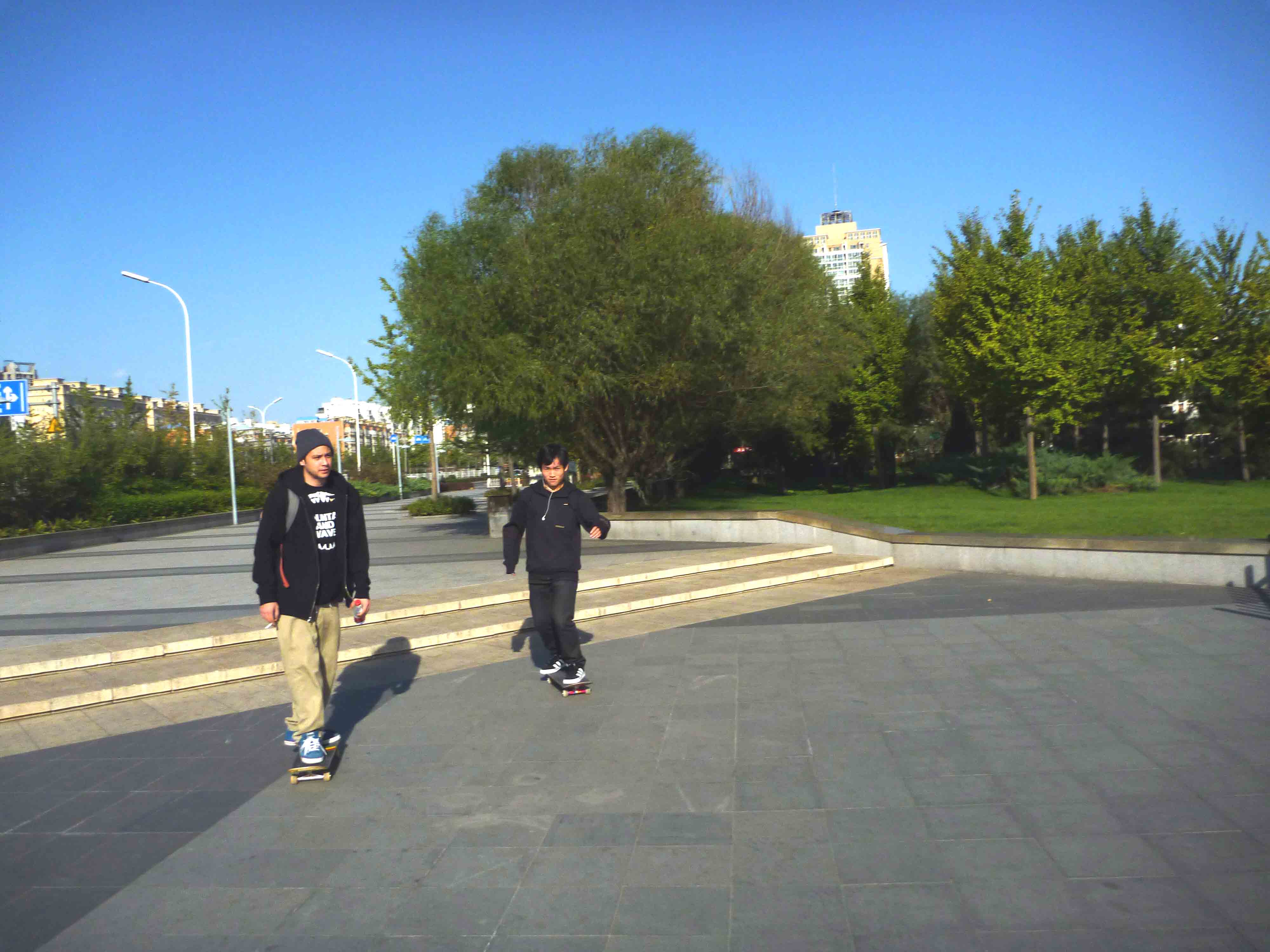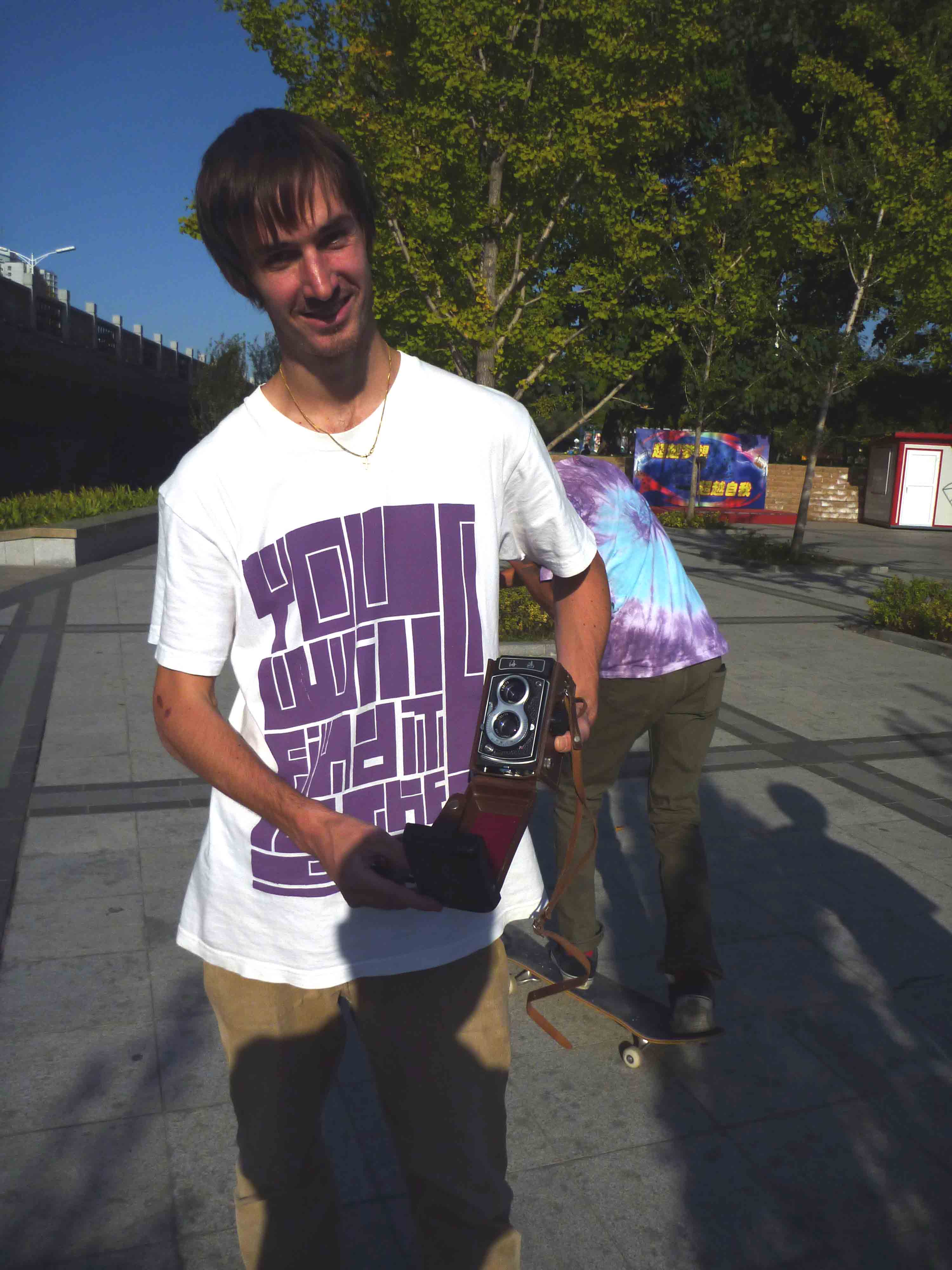 马蹄(Matias)没坐也只能站着了,他来自德国,于今年夏天再返北京,继续他的滑板生活,风格不错!