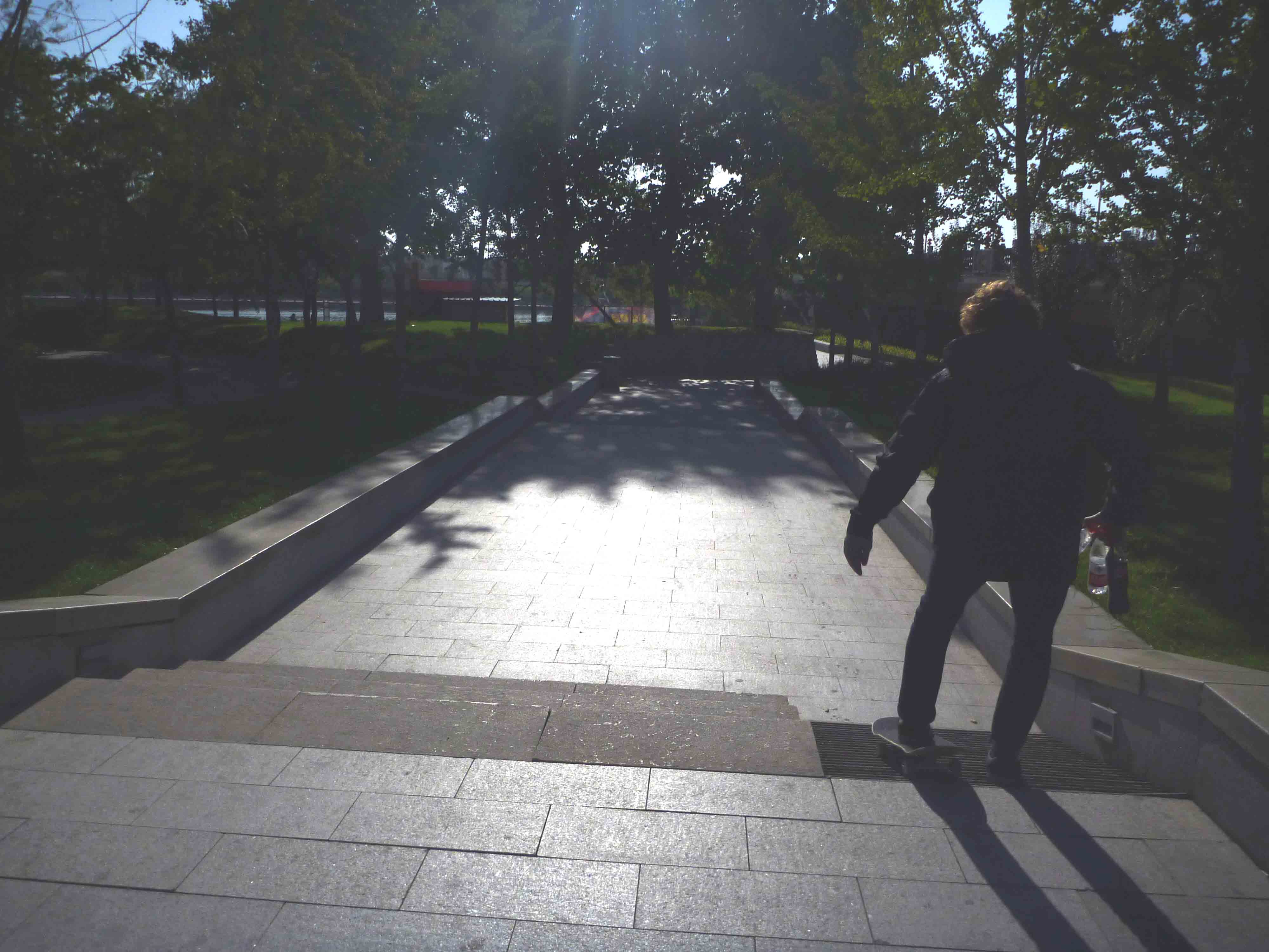 10月14日,席彬,李文金,张子杨,P Dan,Dan,Steve,马蹄,等在北京的部分滑手们约好一起来到位于北京郊区的通州大桥公园滑板及拍摄,虽然当天有3 ,4级风,但也还算是蓝天白云,滑板很舒服的天气. 大家1点半左右在国贸地铁见面后,一起坐公车前往通州大桥.