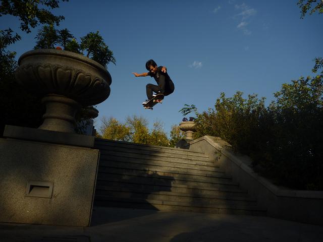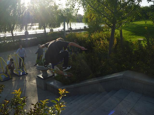席彬的Kickflip也很轻松,他在去年Gift Video – 《It‘s a wrap》中有个Bs 180 kickflip就是在这里拍的,看来他很喜欢这个十层.