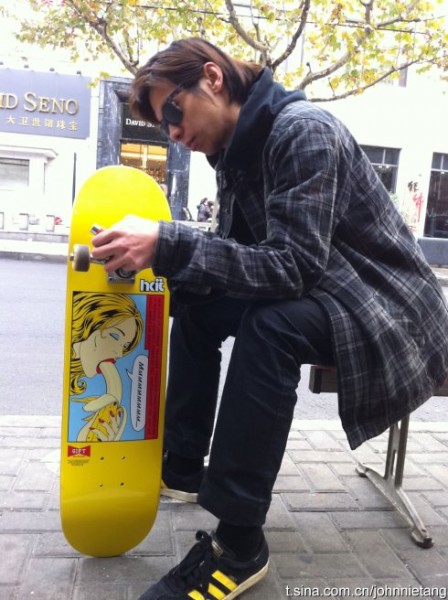 新浪微博上逐一地公布了新款板面图案设计,非学院背景出生的他完成了这一次的所有图案设计。本次板面产品共有九