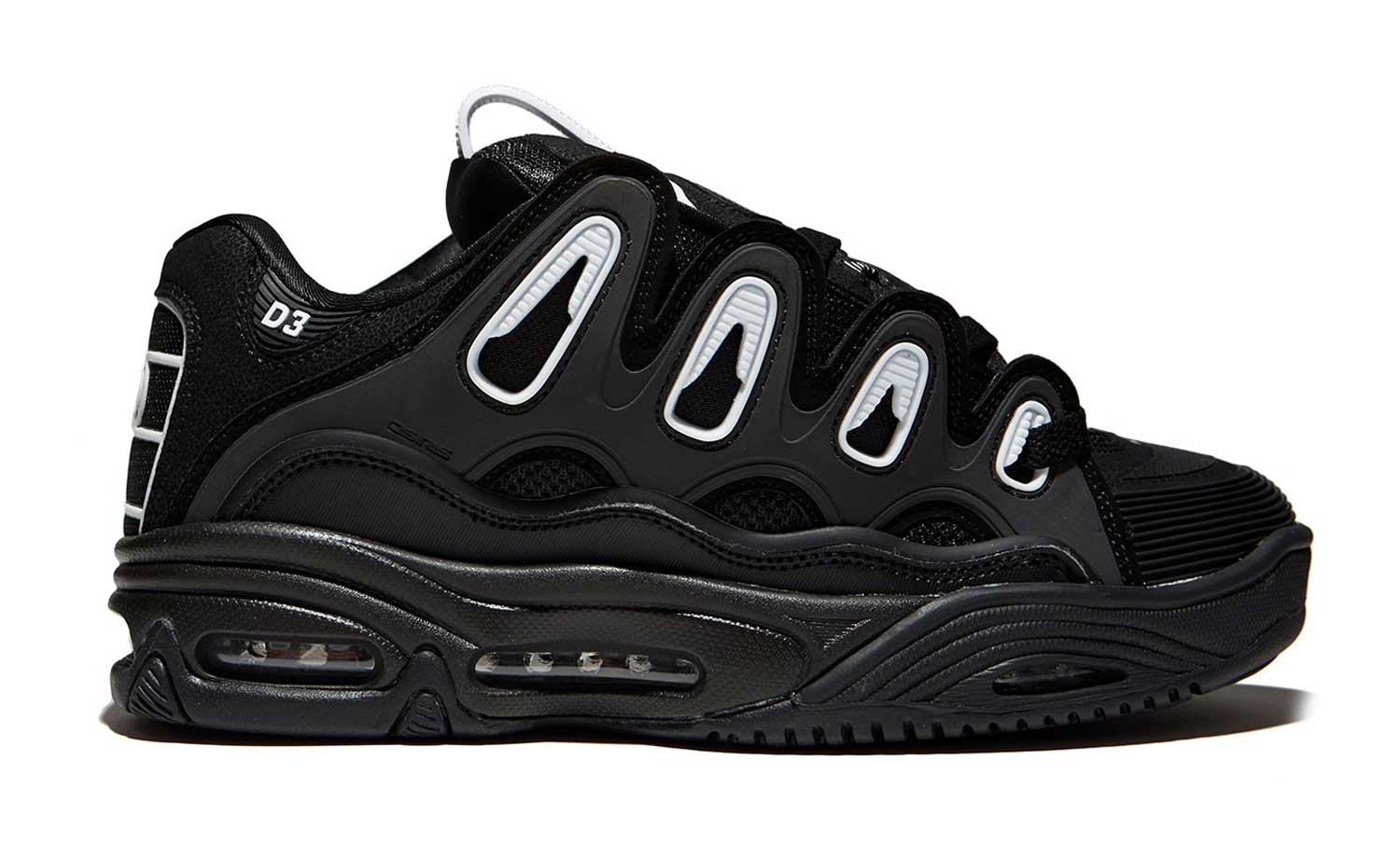 史上最畅销的签名滑板鞋就是它,同时也是史上最丑的滑板鞋,Osiris D3 奇迹般的把这两个头衔合二为一。D3 就是是面包鞋的代名词,超大的鞋带孔、超肥的鞋舌上还有暗袋。有趣的是,D3 2001 年发售之后一直不温不火,但 6 年后它的销量突然开始暴涨,而当时 Osiris 老板之一 Tony Magnusson 还正在考虑是否要停产该鞋。Fred Durst 和 Avril Lavigne 等明星都被拍到穿过此鞋,可见其覆盖范围之广。15 年后,Osiris 在 2016 年又重新开始发售 D3,和现在追求轻便的硫化鞋的主流背道而驰。