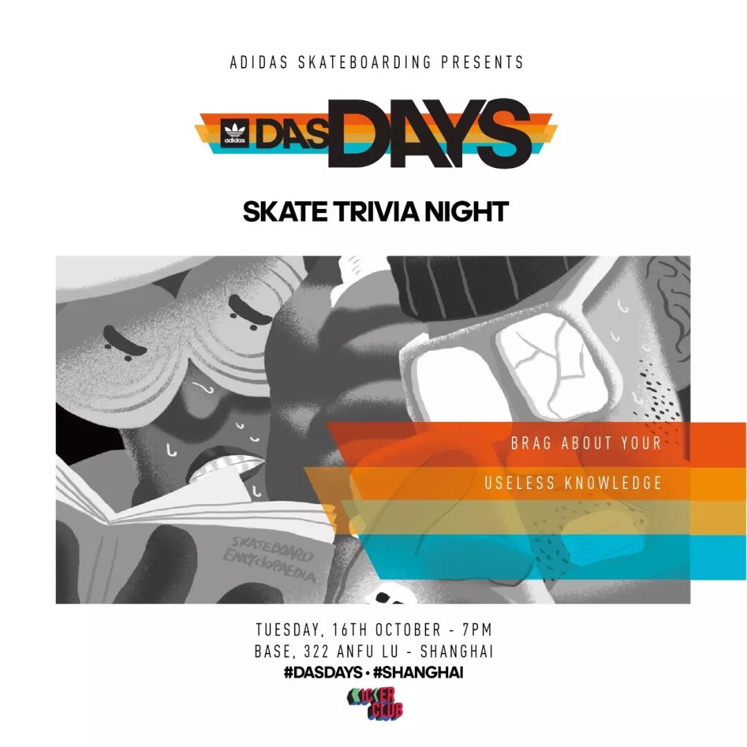 10月16号(周二)KickerClub联合呈现:SKATE TRIVIA滑板狂欢之夜